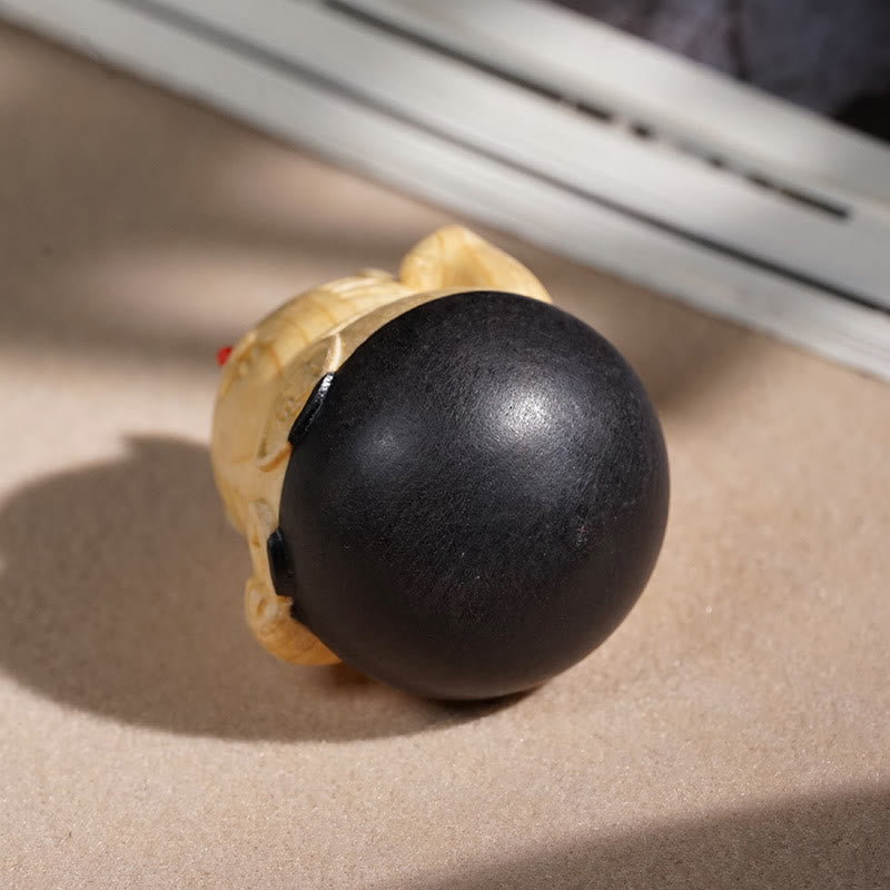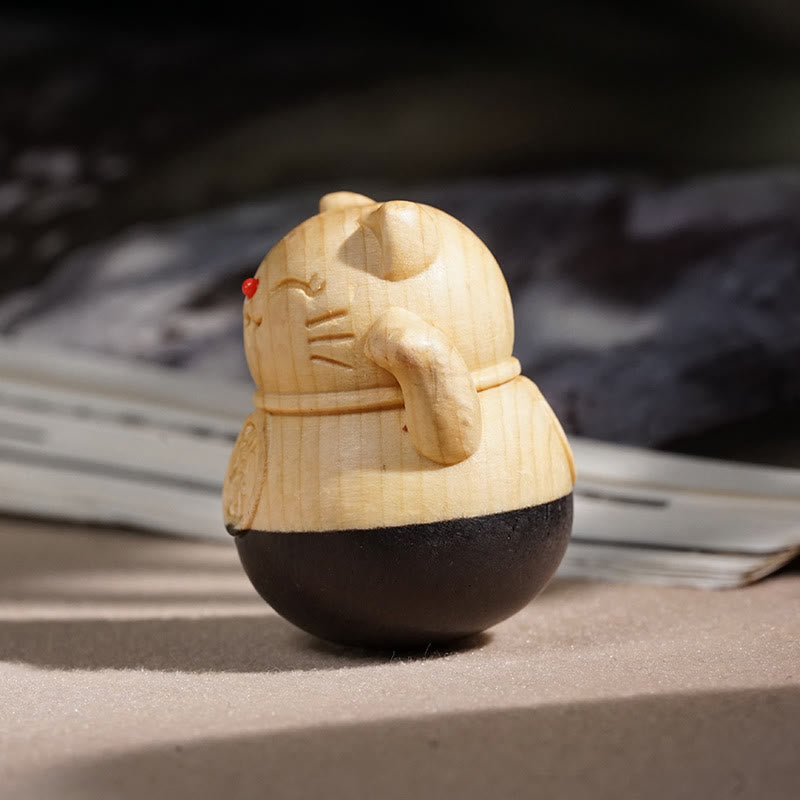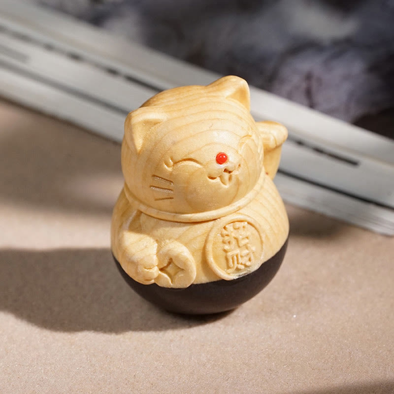 Buddha Stones Attract Wealth Mini Lucky Cat Ebony Beech Wood Carved Protection Decoration 4.7*4cm