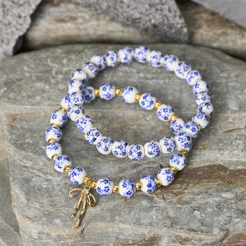 Buddha Stones Blue And White Pink Porcelain Beaded Bowknot Beaded Inner Peace Bracelet - Blue and White(Wrist Circumference:15-16cm) - image 0