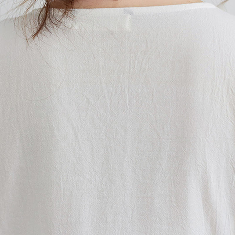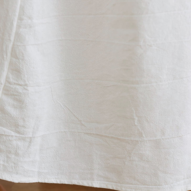 Buddha Stones Casual Embroidered Flower Pattern V-neck Three Quarter Sleeve Design Cotton Linen Midi Dress - Snow - US8-10,UK/AU12-14,EU40-42 (2XL) - image 1