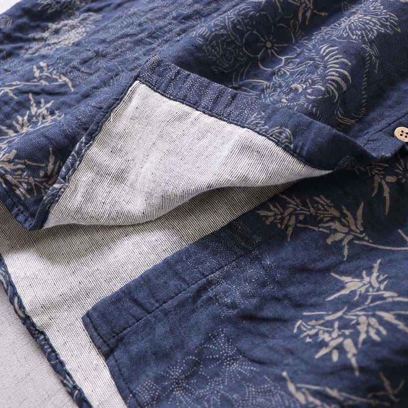 Buddha Stones Commute Bamboo Floral Pattern Long Sleeve Buttons Women's Cotton Midi Dress With Pockets - DarkBlue - US4-6,UK/AU8-10,EU36-38 (F) - image 1