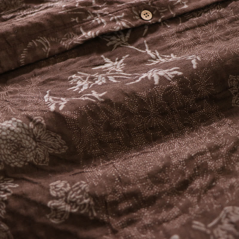 Buddha Stones Commute Bamboo Floral Pattern Long Sleeve Buttons Women's Cotton Midi Dress With Pockets - SaddleBrown - US4-6,UK/AU8-10,EU36-38 (F) - image 9