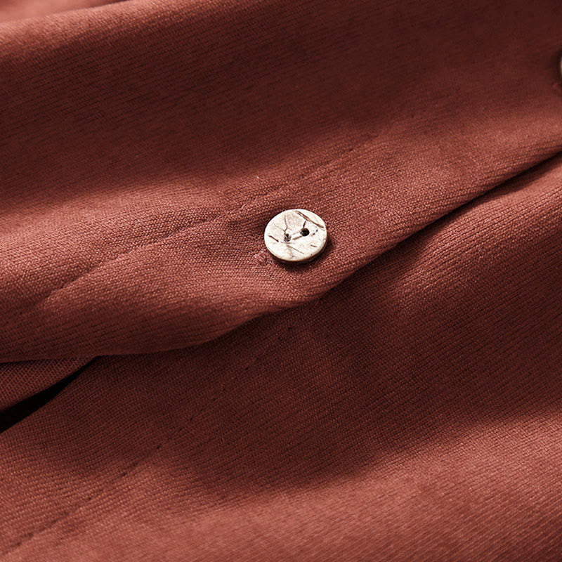 Buddha Stones Fall Solid Color Buttons Down Lace-up Design Long Sleeve Midi Dress With Pockets - SaddleBrown - US12,UK/AU16,EU44 (2XL) - image 0