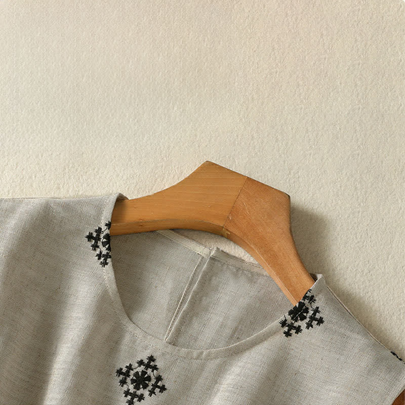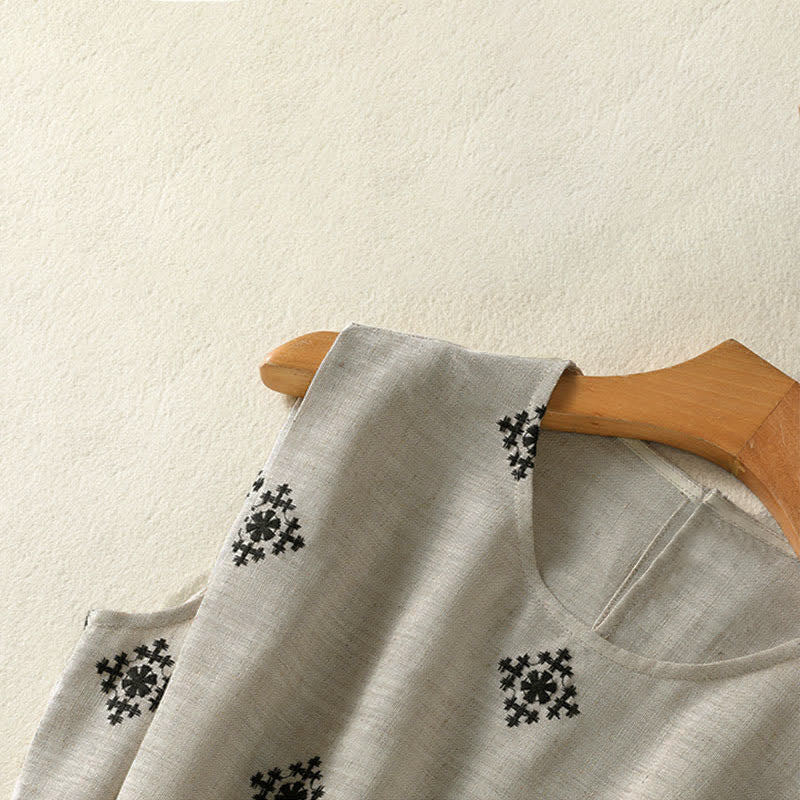 - SIMPLE DESIGN: High-waist drawstring A-line Below Knee Dress with geometric print and embroidered accents. Boho-inspired relaxed silhouette with pockets and decorative hem detail.