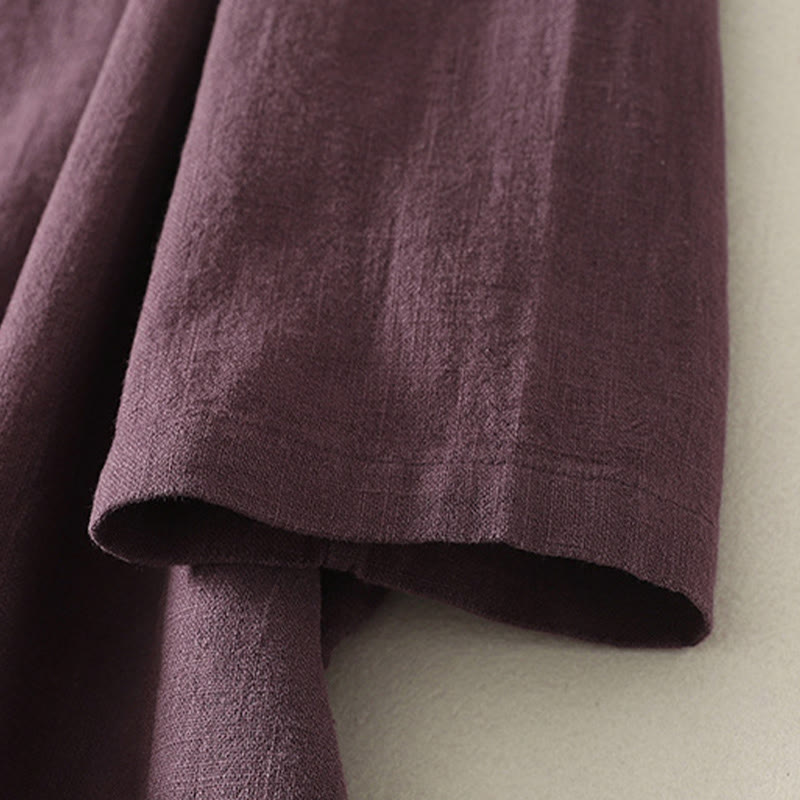 Buddha Stones Spring Diagonal Closure Frog Buttons Design Cotton Long Sleeve Midi Dress - Linen - US12,UK/AU16,EU44 (2XL) - image 6