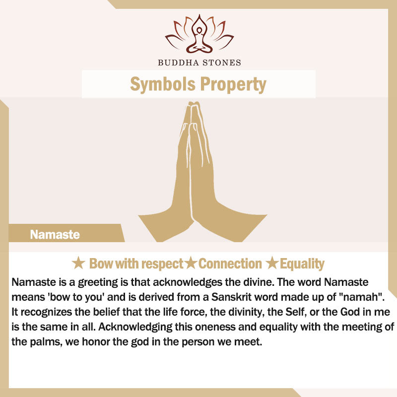 Namaste is a greeting is that acknowledges the divine. The word Namaste means 'bow to you' and is derived from a Sanskrit word made up of "namah". It recognizes the belief that the life force, the divinity, the Self, or the God in me is the same in all. Acknowledging this oneness and equality with the meeting of the palms, we honor the god in the person we meet.