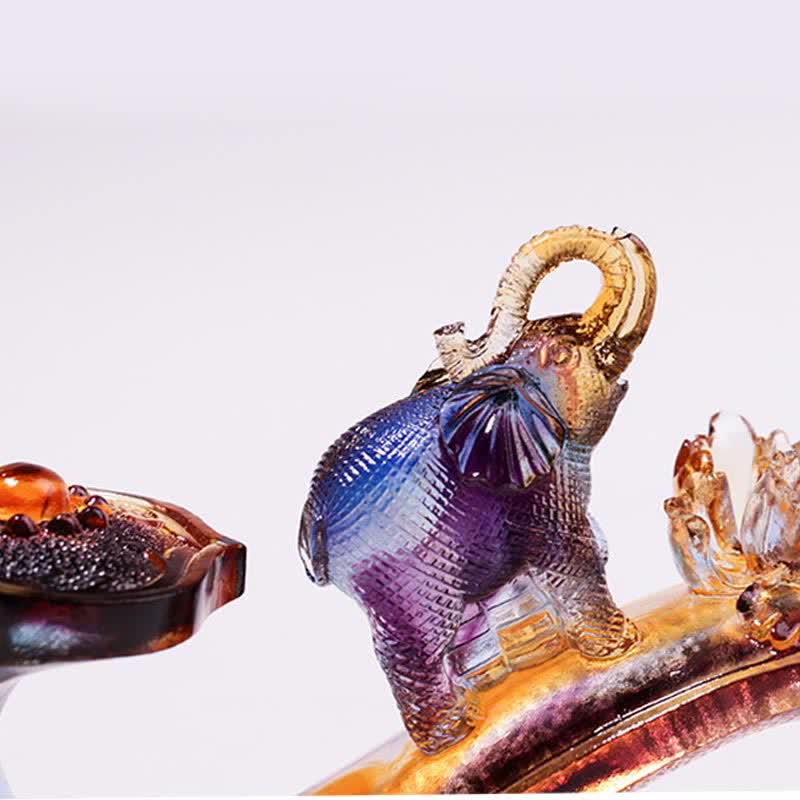 Handmade Liuli Crystal Ruyi Elephant Art Piece Home Decoration With Crystal Base