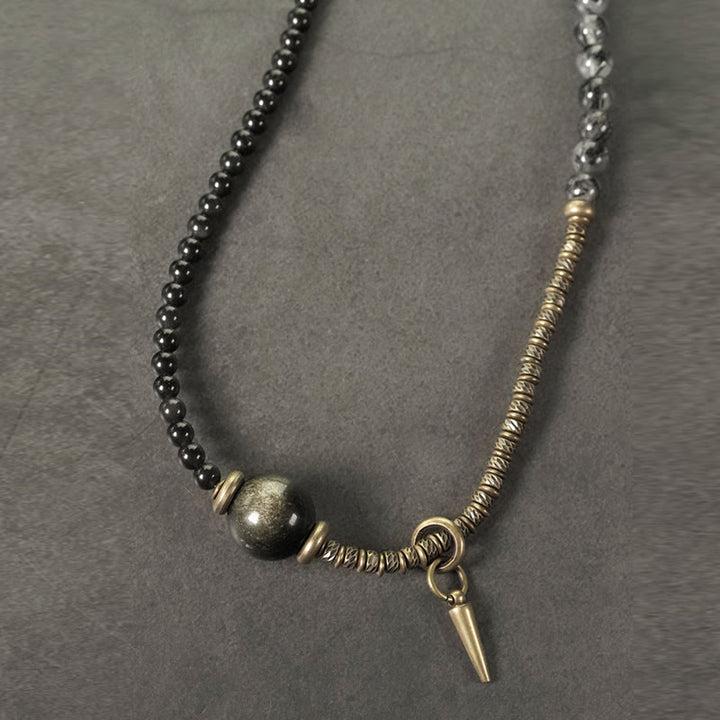 • Material: Gold Sheen Obsidian, Black Rutilated Quartz, Brass