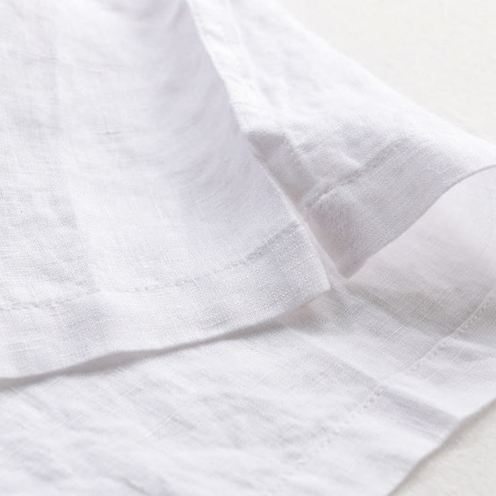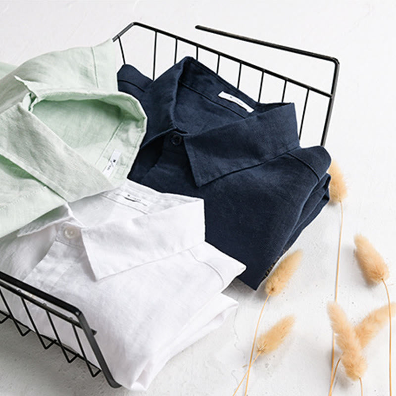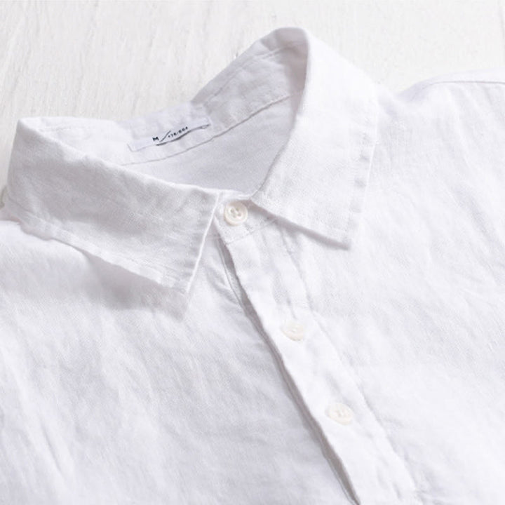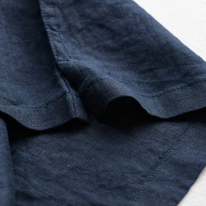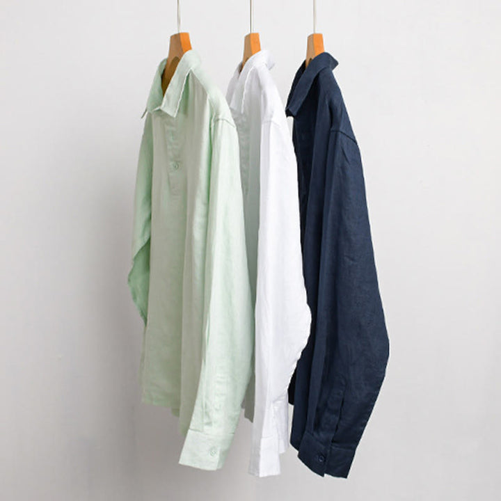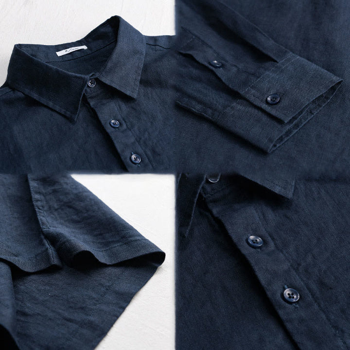 Buddha Stones Men's Solid Color Lapel Buttons Long Sleeve Pure Linen Shirt