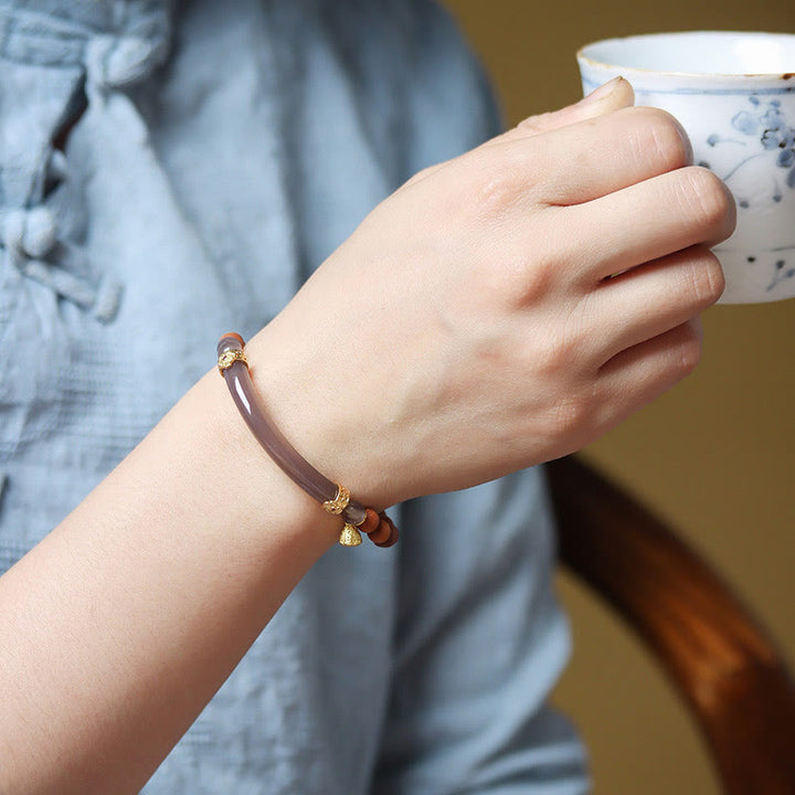 Buddha Stones Sandalwood Gray Agate Chalcedony Cuff Half Bracelet Bangle