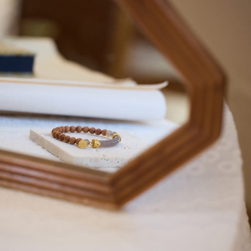 • Material: Sandalwood, Gray Agate, Chalcedony, 925 Sterling Silver Gold Plated