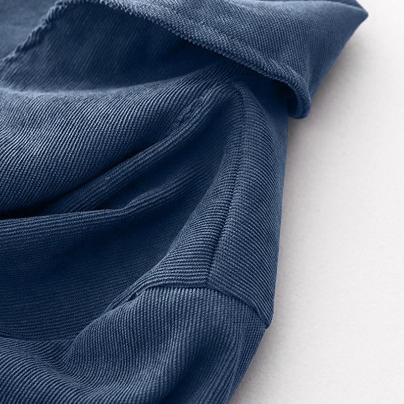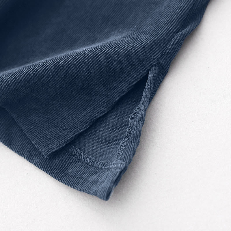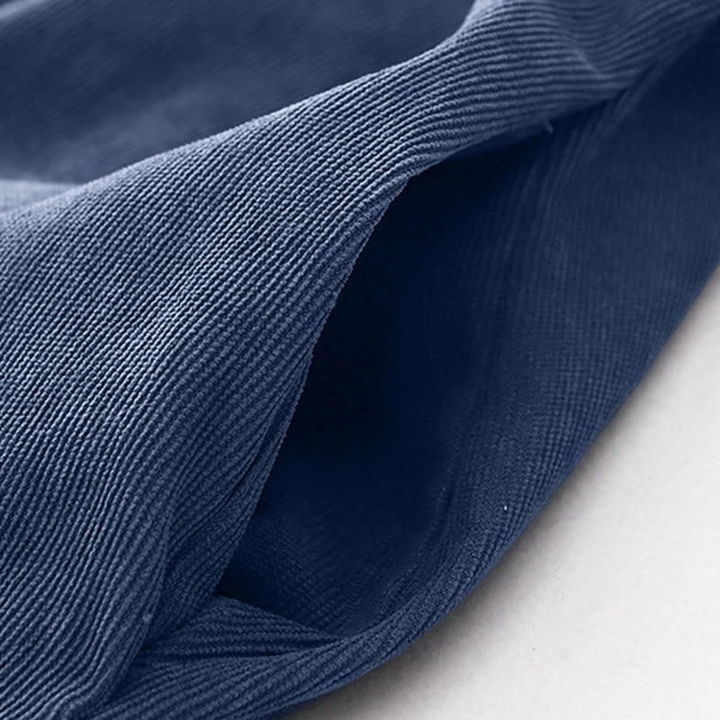 Buddha Stones Fall Plain Buttons Design Long Sleeve Corduroy Midi Dress With Pockets