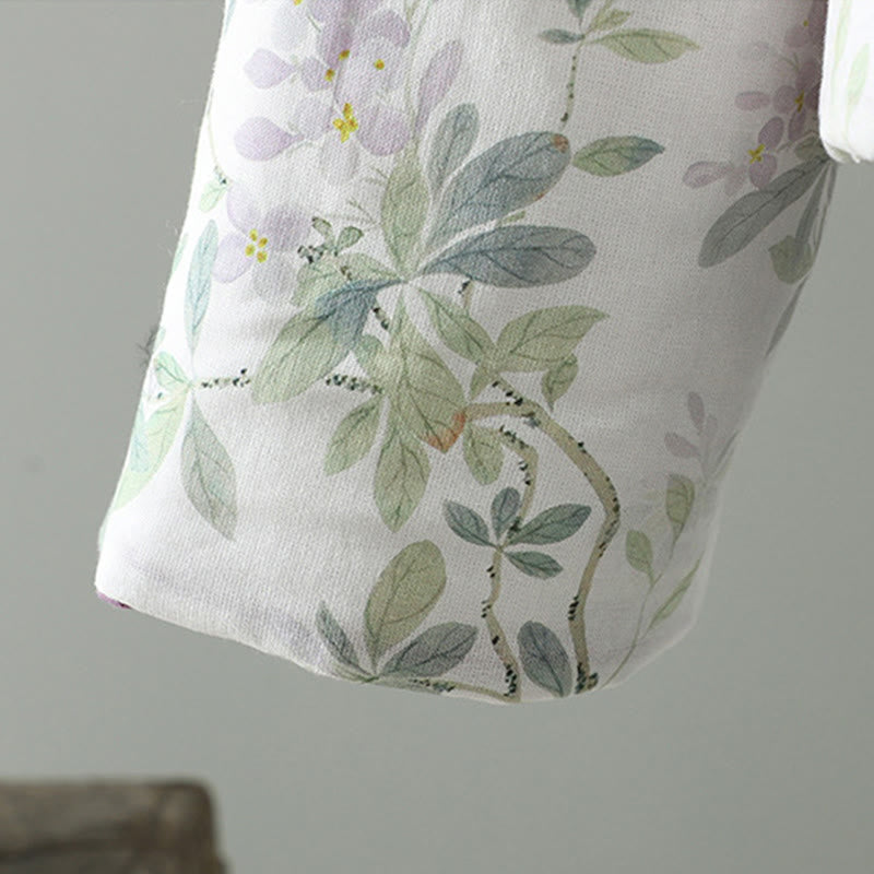Buddha Stones Women's Printing Flower Pattern Long Sleeve Frog-buttons Cotton Jacket