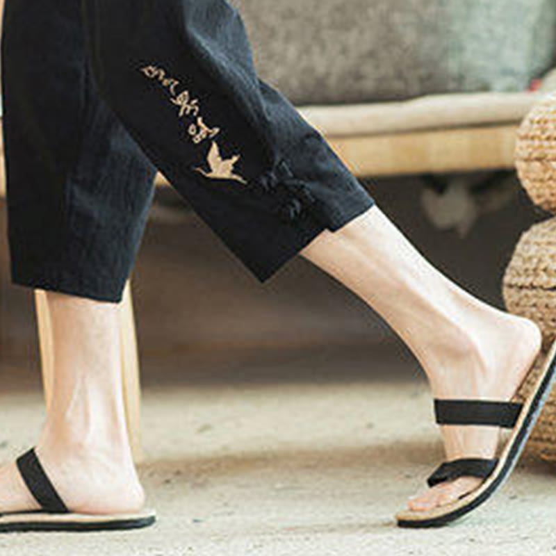 Buddha Stones Crane Embroidery Cotton Men's Cropped Harem Pants With Pockets - image 38