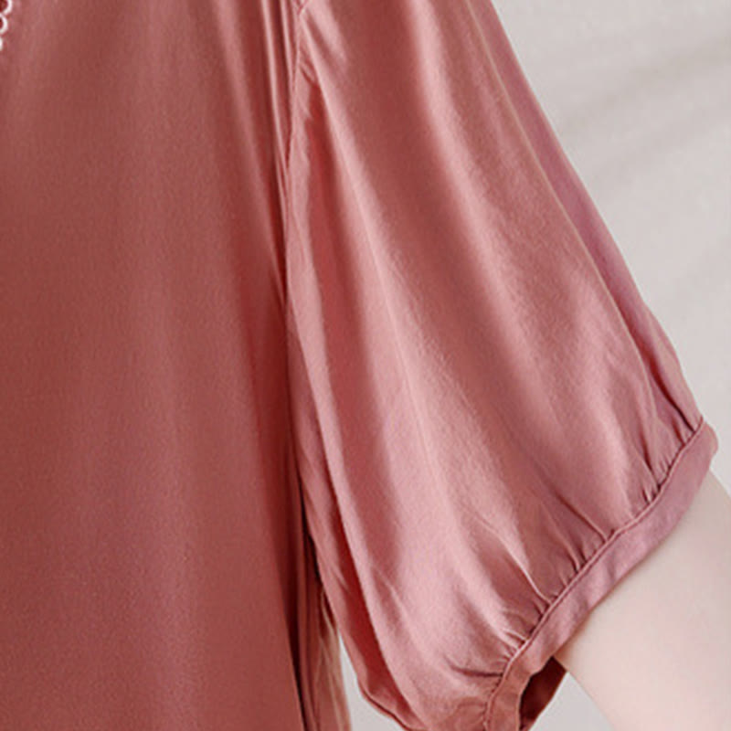 Buddha Stones V-Neck Pink Buttons Design Half Sleeve T-shirt Tee