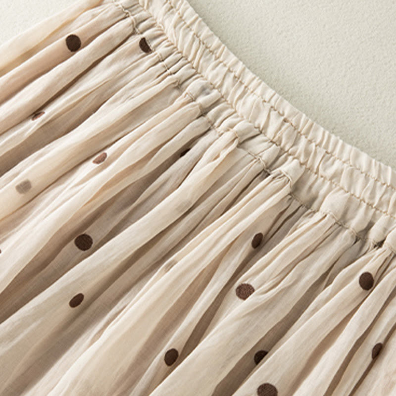 Buddha Stones Artistic Vintage Dot Pattern Women's Pleated Skirt - Beige - US8-10,UK/AU12-14,EU40-42 (2XL) - image 0