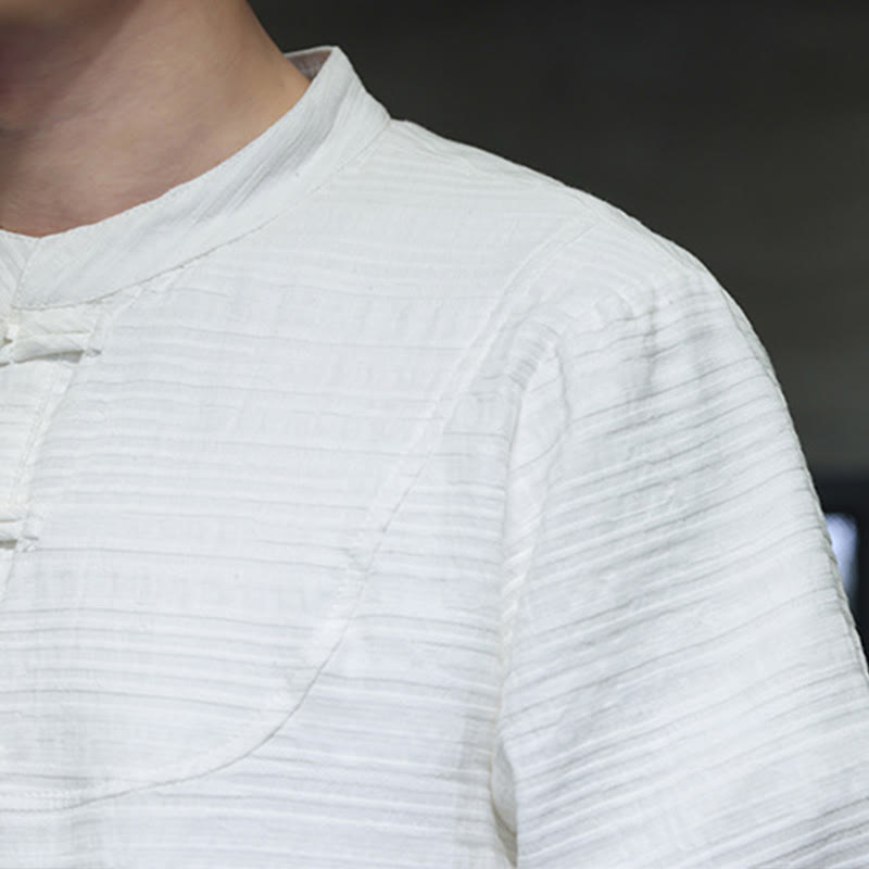 Buddha Stones Solid Color Half Frog-button Tang Suit Cotton Linen Men's Jacket Shirt  - White - US/UK/AU46,EU56 (5XL) - image 8