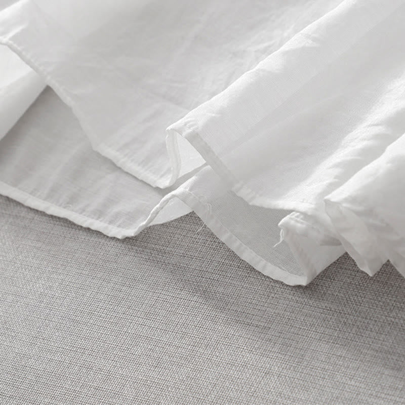 Buddha Stones Summer White Pure Color Embroidery Leaf Flower V-Neck Short Sleeve Midi Dress With Pockets