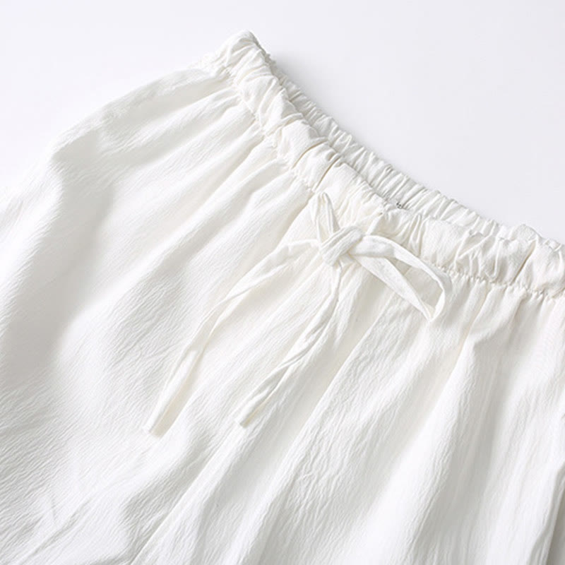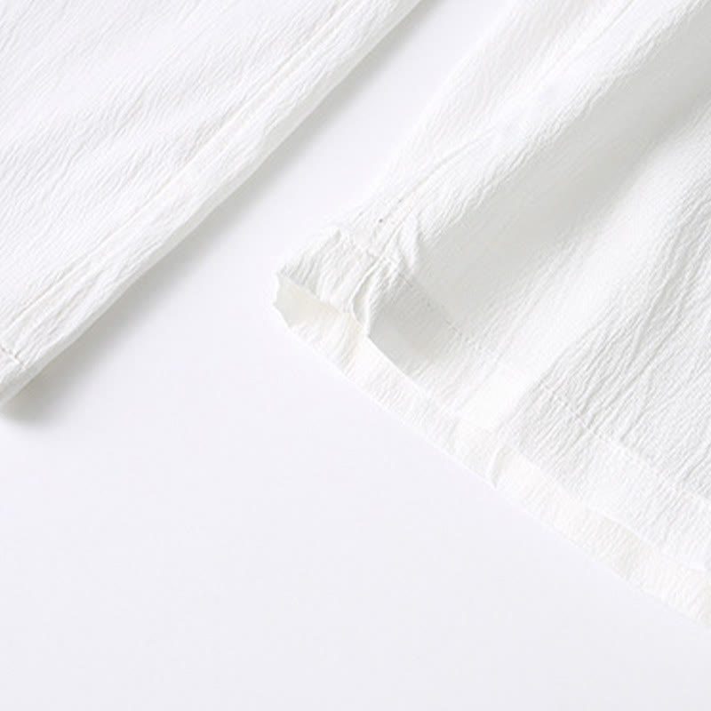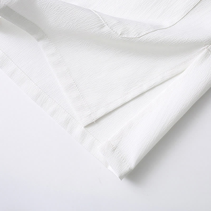 Buddha Stones Tang Frog-Button Short Sleeve Shirt Wide Leg Pants Men's Suit - White - US/UK/AU44,EU54 (4XL) - image 0