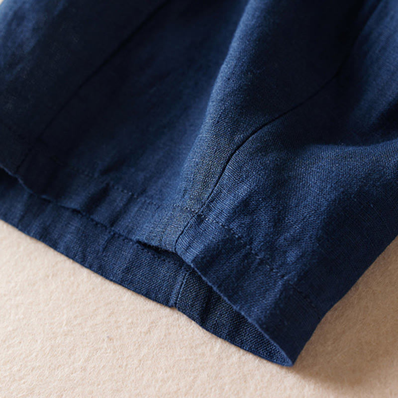 Buddha Stones Colored Thread 7-8 Length Women's Harem Cotton Linen Pants With Pockets