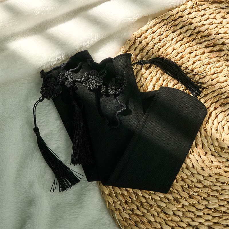 • Traditional-Inspired Detail: Featuring elegant Chinese frog-button accents and subtle tassels, these mid-calf socks bring a modern twist to classic qipao aesthetics.