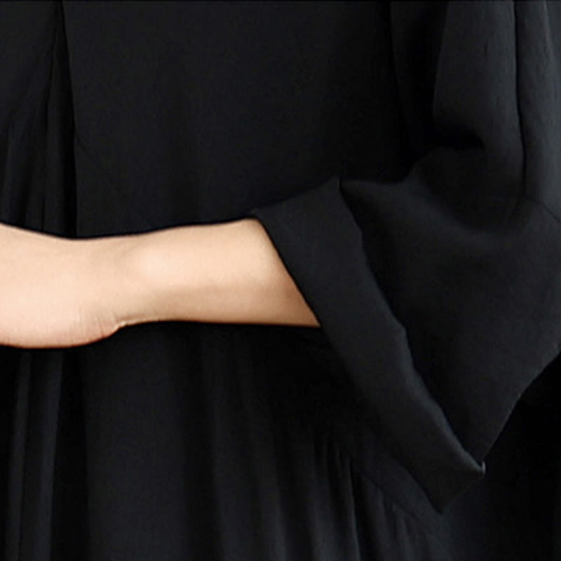 Buddha Stones Fall Pure Color V-Neck Long Sleeve Cotton Midi Dress - Black - US4-12,UK/AU8-18,EU36-46(F) - image 1