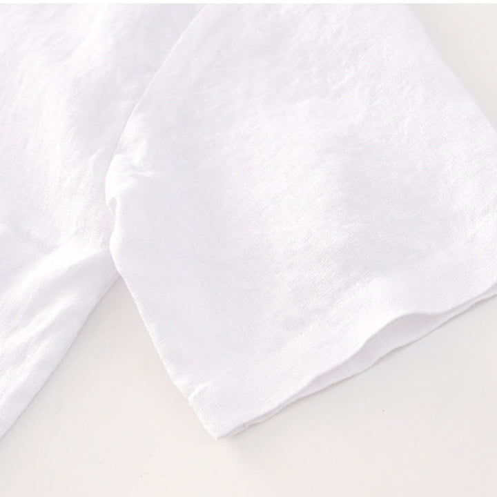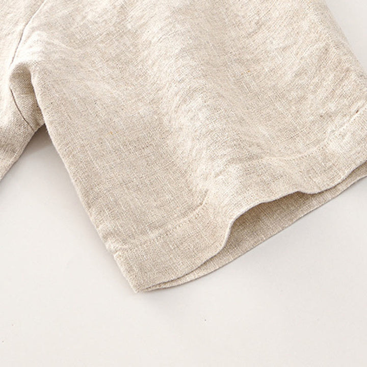 Buddha Stones Solid Summer Short Sleeve Buttons Linen Men's Shirt With Pockets