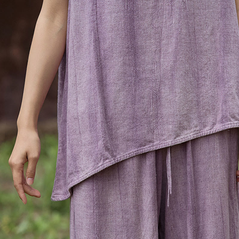 Buddha Stones Summer Tie-dye Linen Crew Neck Sleeveless Women's Vest - Plum - US4,UK/AU8,EU36 (F) - image 1