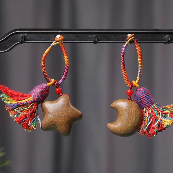 Buddha Stones Tibetan Colored Rope Green Sandalwood Star Moon Peace Key Chain - Star (23*36mm) - image 1