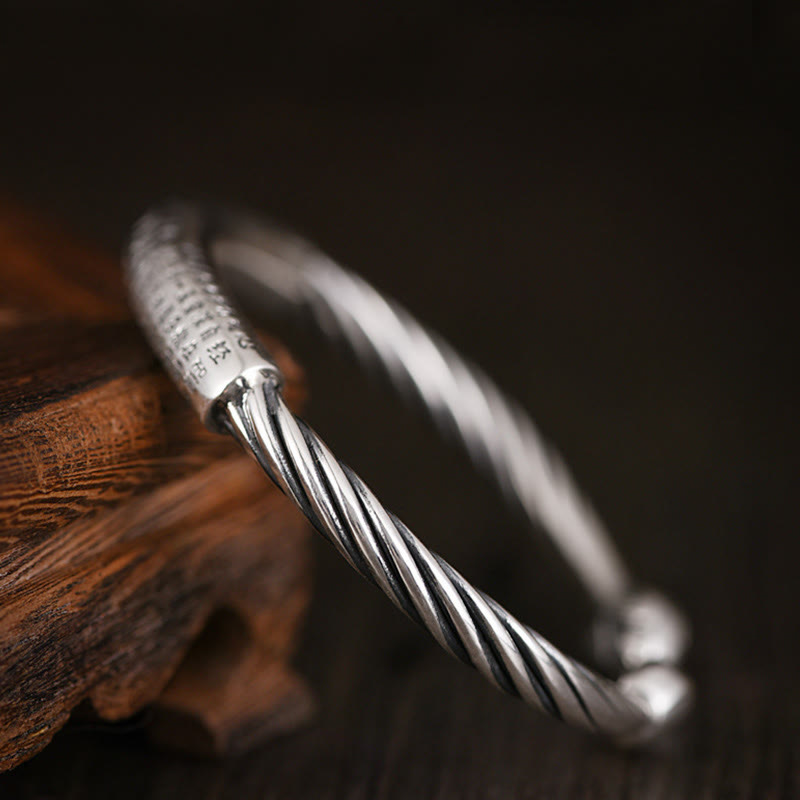 Buddha Stones Tibetan Om Mani Padme Hum Heart Sutra Purity Cuff Bracelet Bracelet Bangle BS 1