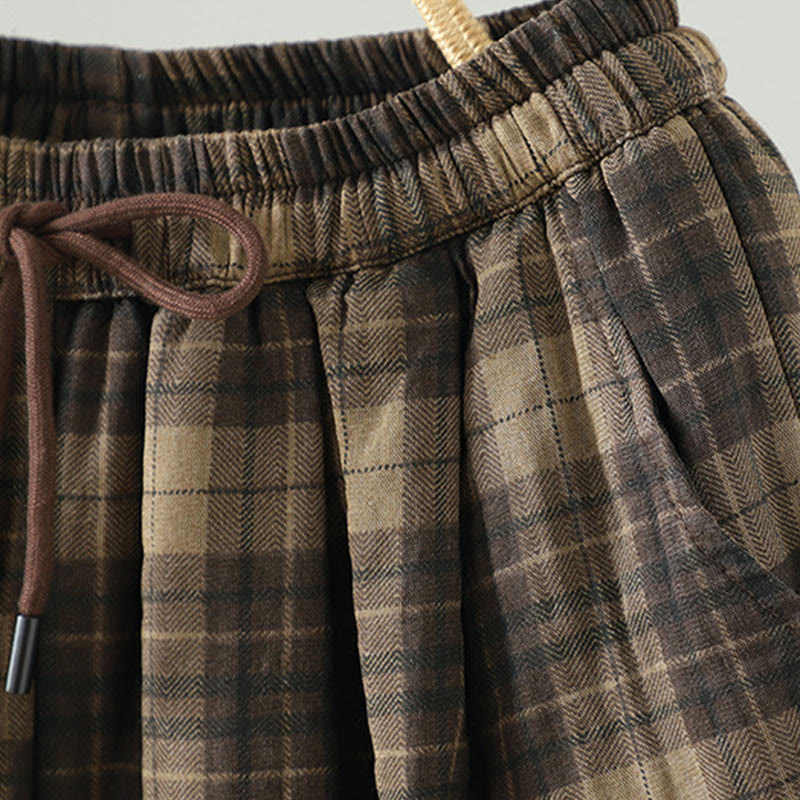 Buddha Stones Multi-color Plaid Pattern Cotton-padded Women's Harem Thermal Pants With Pockets