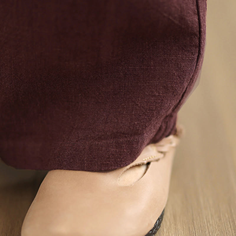 Buddha Stones Commute Retro Solid Color Women's Harem Drawstring Cotton Pants With Pockets