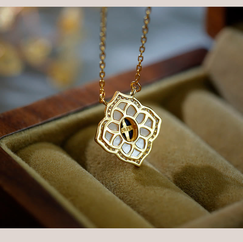 Buddha Stones 925 Sterling Silver Tridacna Stone Lazurite Prismatic Design Blessing Earrings Necklace Pendant Jewelry Set - Necklace - image 1