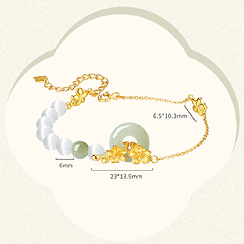 Buddha Stones Chrysoberyl Hetian Jade 999 Sterling Silver Love Bracelet - Chrysoberyl Hetian Jade Golden 999 Sterling Silver(Wrist Circumference: 14-19cm) - image 0