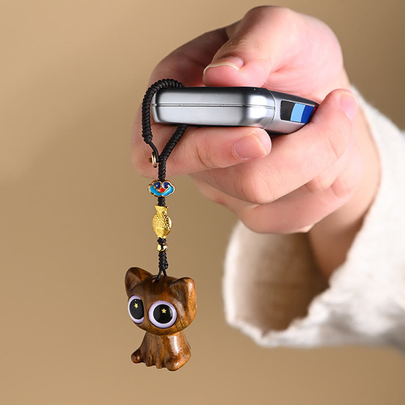 Buddha Stones Green Sandalwood Lucky Cat Koi Fish Cure Key Chain Phone Hanging Decoration