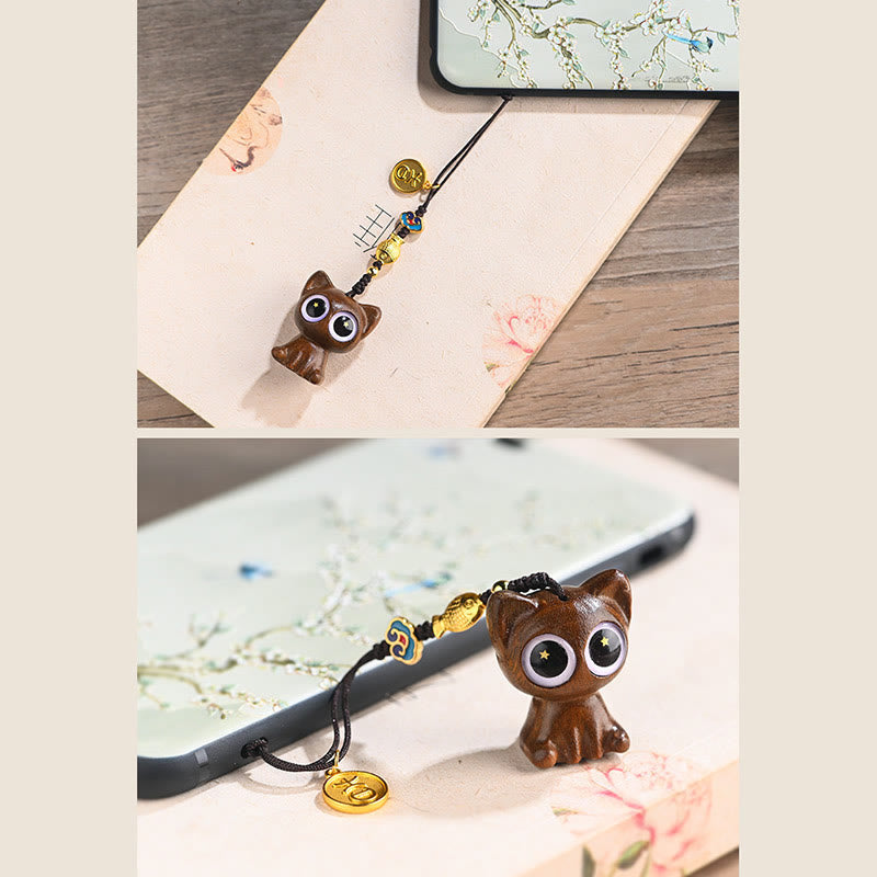 Buddha Stones Green Sandalwood Lucky Cat Koi Fish Cure Key Chain Phone Hanging Decoration - Green Sandalwood Cat Phone Hanging Decoration - image 3