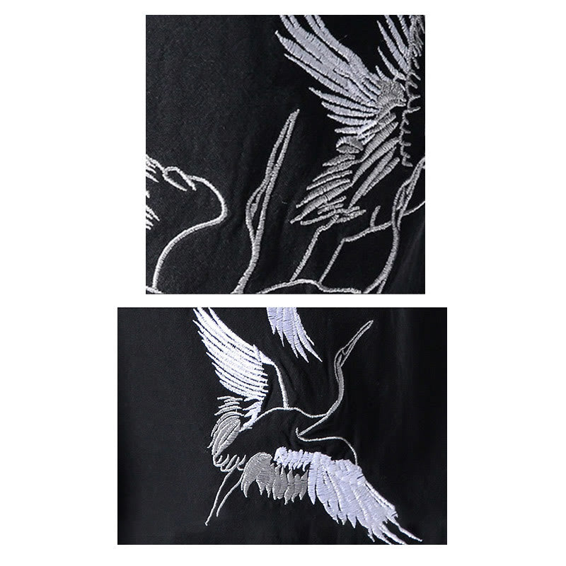 Buddha Stones White Crane Embroidery Design Drawstring Men's Harem Pants With Pockets - Black - US/UK/AU42,EU52 (3XL) - image 6