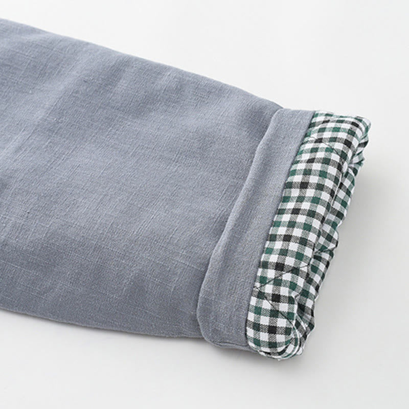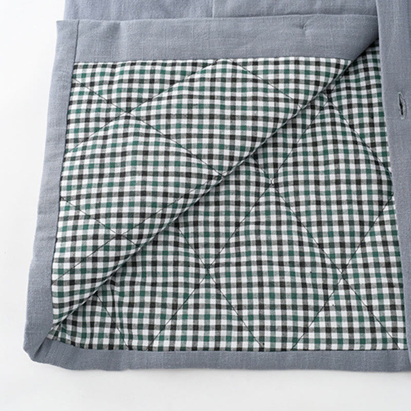 Buddha Stones Winter Men's Frog-Button Tang Suit Linen Cotton Fleece Lined Jacket Shirt With Pockets