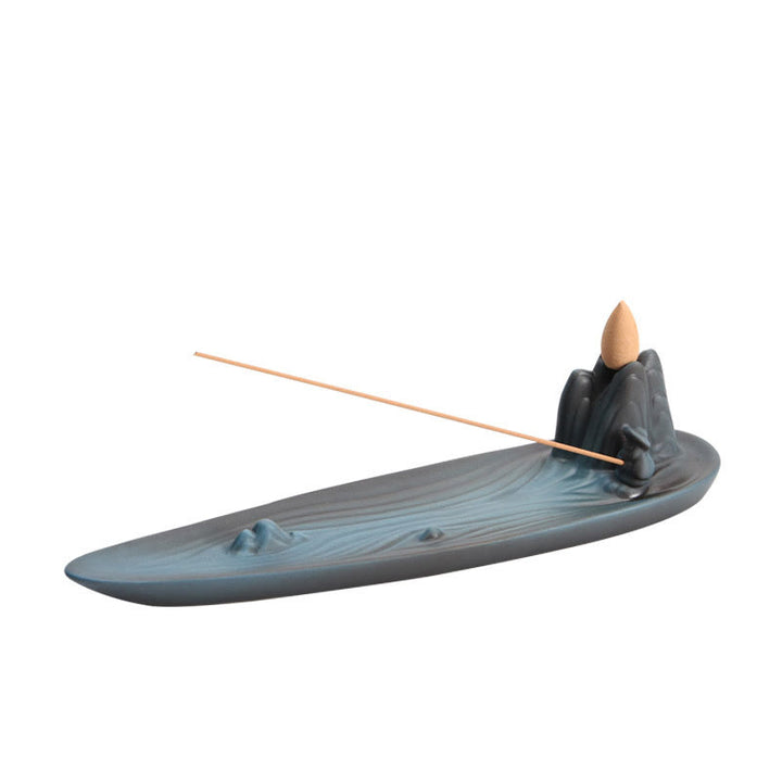 Buddha Stones Double Koi Fish Mountain Healing Ceramic Stick Incense Burner Decoration