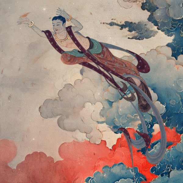 • Design Inspiration: The leggings feature a design of Dunhuang Flying Apsaras and Auspicious Clouds, symbolizing grace, spirituality, and good fortune. The flying apsaras represent celestial beings associated with beauty and artistic inspiration, while the auspicious clouds signify prosperity and the promise of favorable outcomes, together creating a pattern that celebrates harmony and the divine connection to nature.
