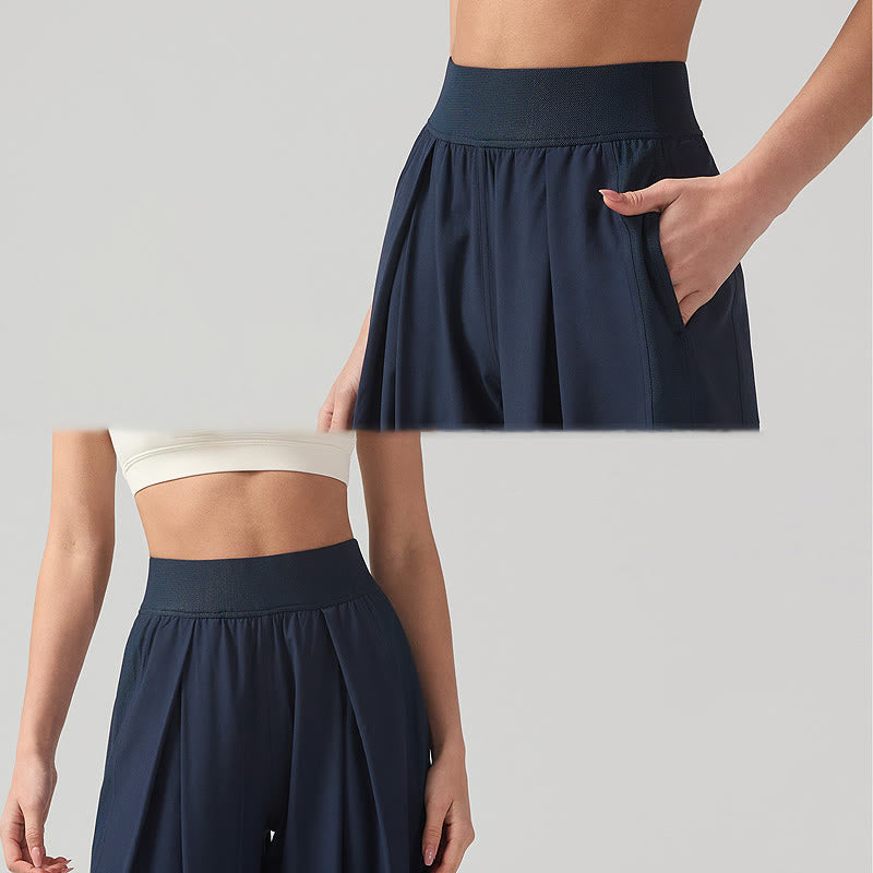 Buddha Stones Solid Color Breathable Women's Wide Leg Pants Sports Yoga Sweatpants With Pockets