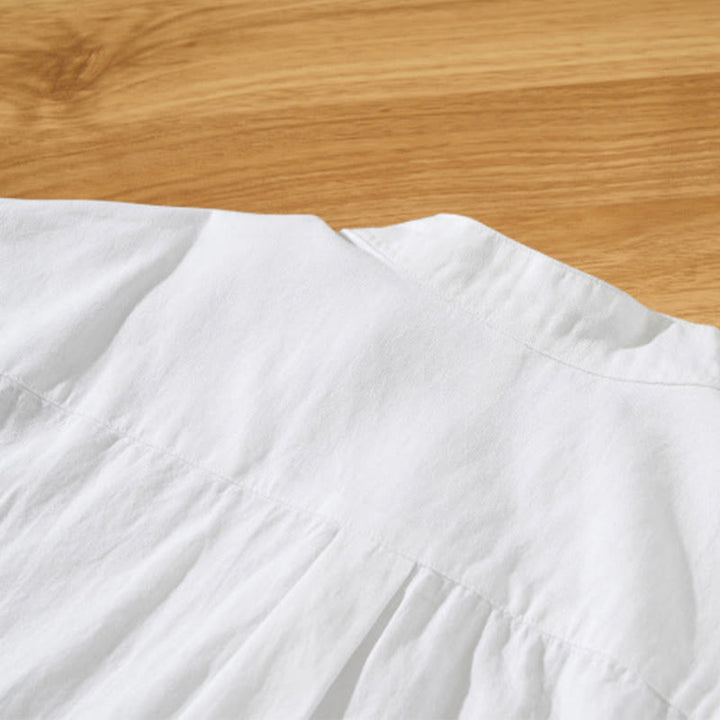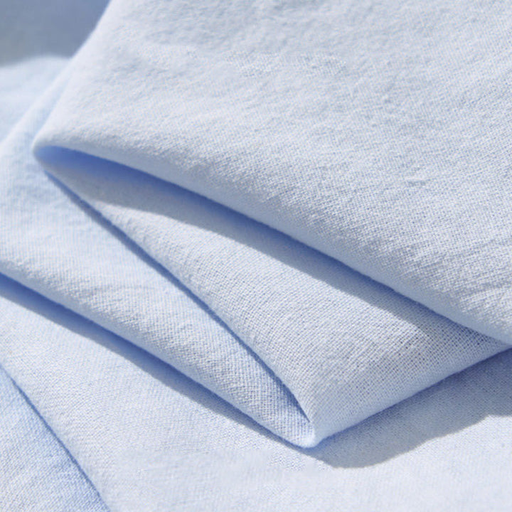 Buddha Stones Summer Solid Men's Half Button Short Sleeve Cotton Shirt