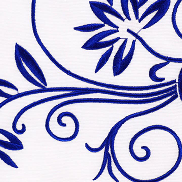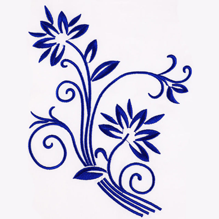Buddha Stones 2Pcs Fall Blue Embroidery Flowers Frog-Button Tai Chi Meditation Qigong Zen Practice Unisex Cotton Clothing Set