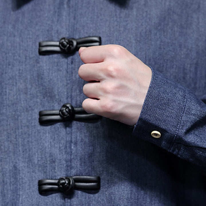 Buddha Stones Men's Frog-Button Cotton Long Sleeve Shirt With Pockets