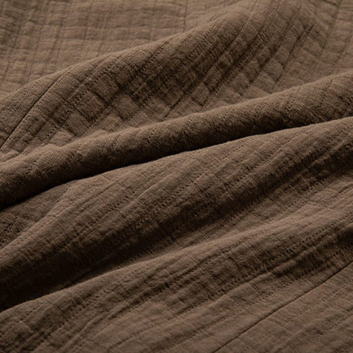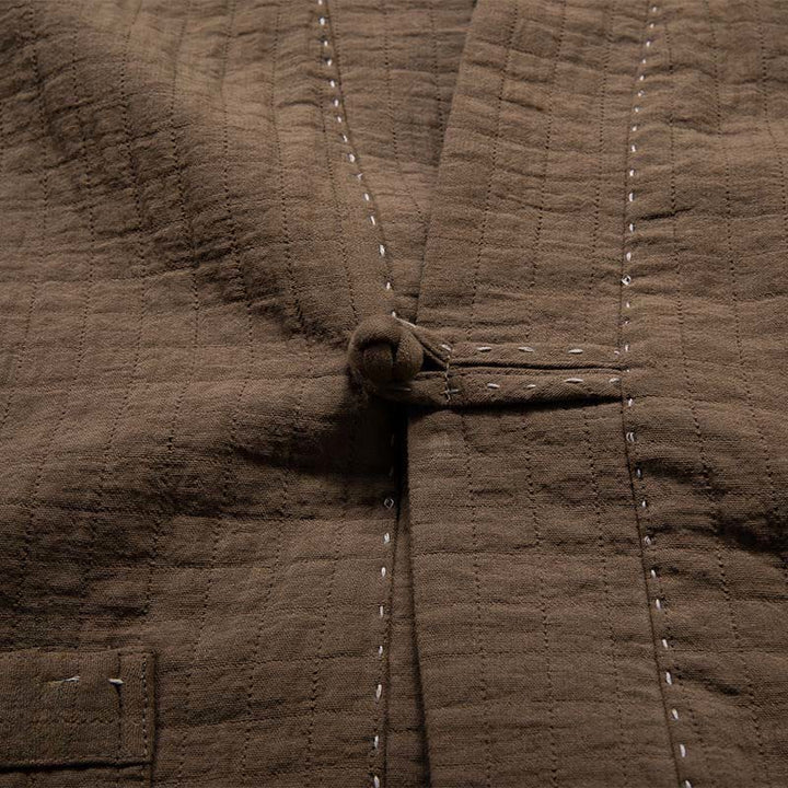 Buddha Stones Men's Plain Pleats Frog-Button Open Front Jacket Cotton Linen Long Sleeve Kimono - SaddleBrown - US/UK/AU48,EU58 (4XL) - image 1