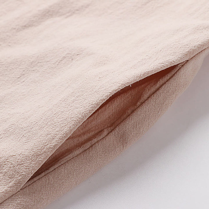 Buddha Stones Vintage Plain Chinese Frog-Button Cotton Long Sleeve Men's Shirt