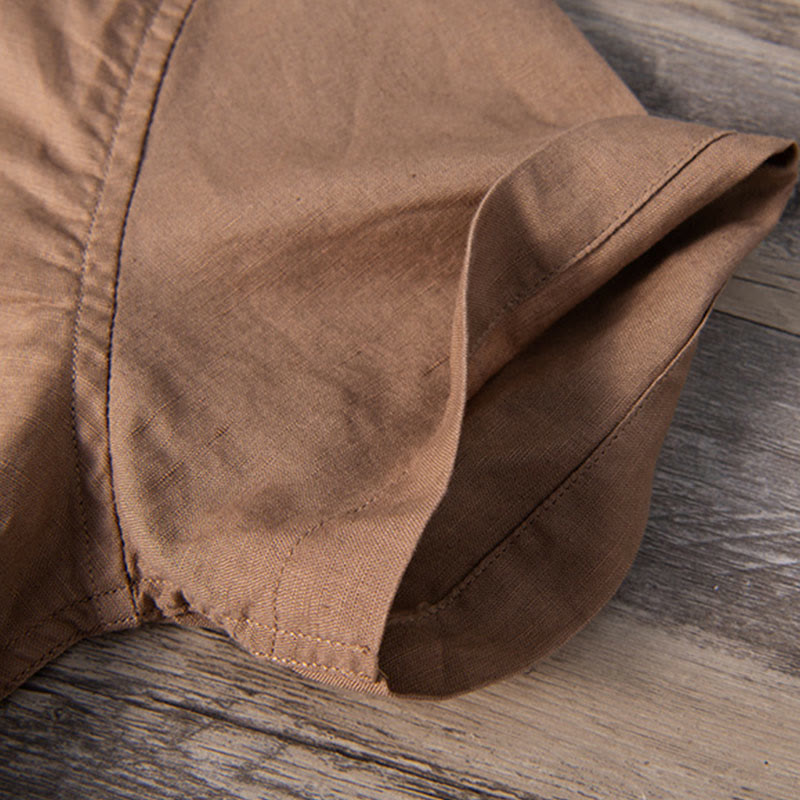 Buddha Stones Daily Plain Patch Color Matching Design Men's Short Sleeve Cotton Linen Shirt - image 15