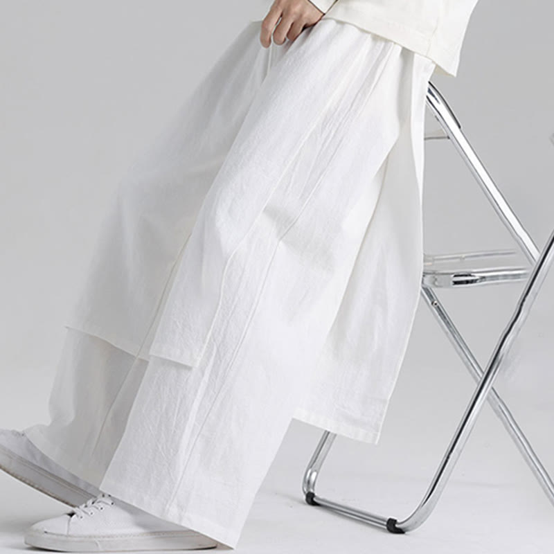 Buddha Stones Plain Patchwork Design Men's Cotton Pants With Pockets - White - US/UK/AU46,EU56 (5XL) - image 19