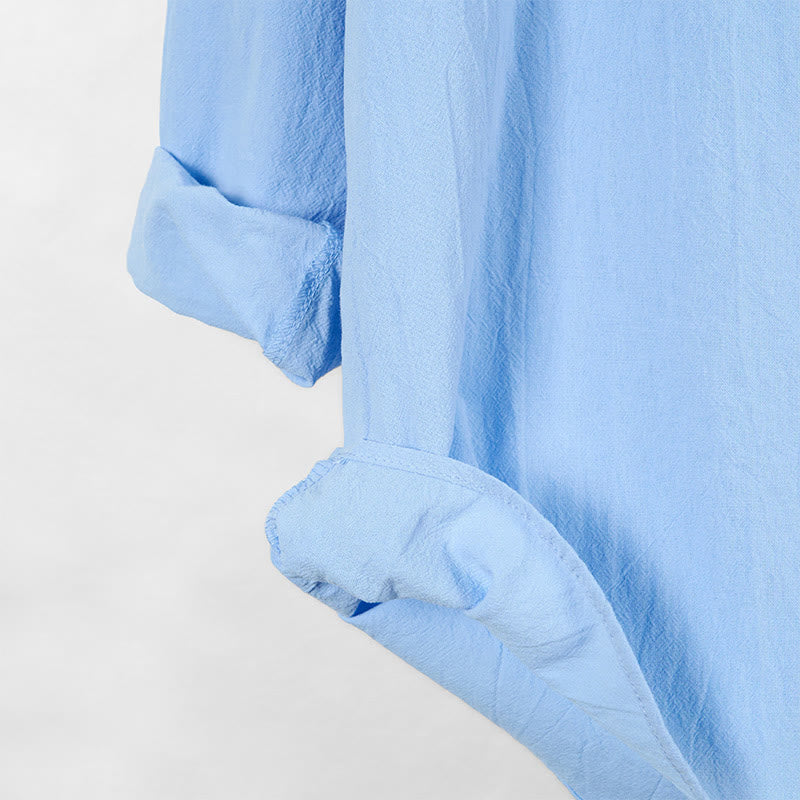 Buddha Stones Solid Color Fall Half Buttons Men's Hooded Long Sleeve Cotton Shirt - LightSkyBlue - US/UK/AU46,EU56 (3XL) - image 0