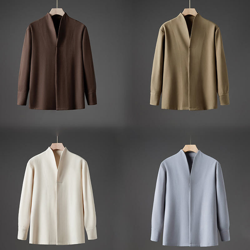 Buddha Stones Solid Fall Long Sleeve Hidden Half Button Design Men's Shirts - image 1