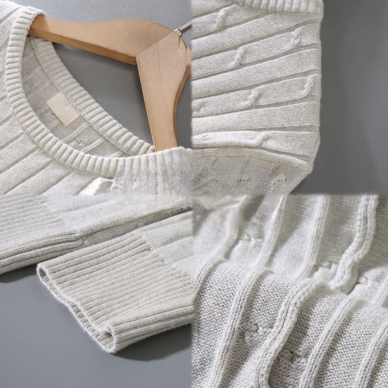 Buddha Stones Cable Knit Design Men's Crew Neck Long Sleeve Pure Cotton Sweater